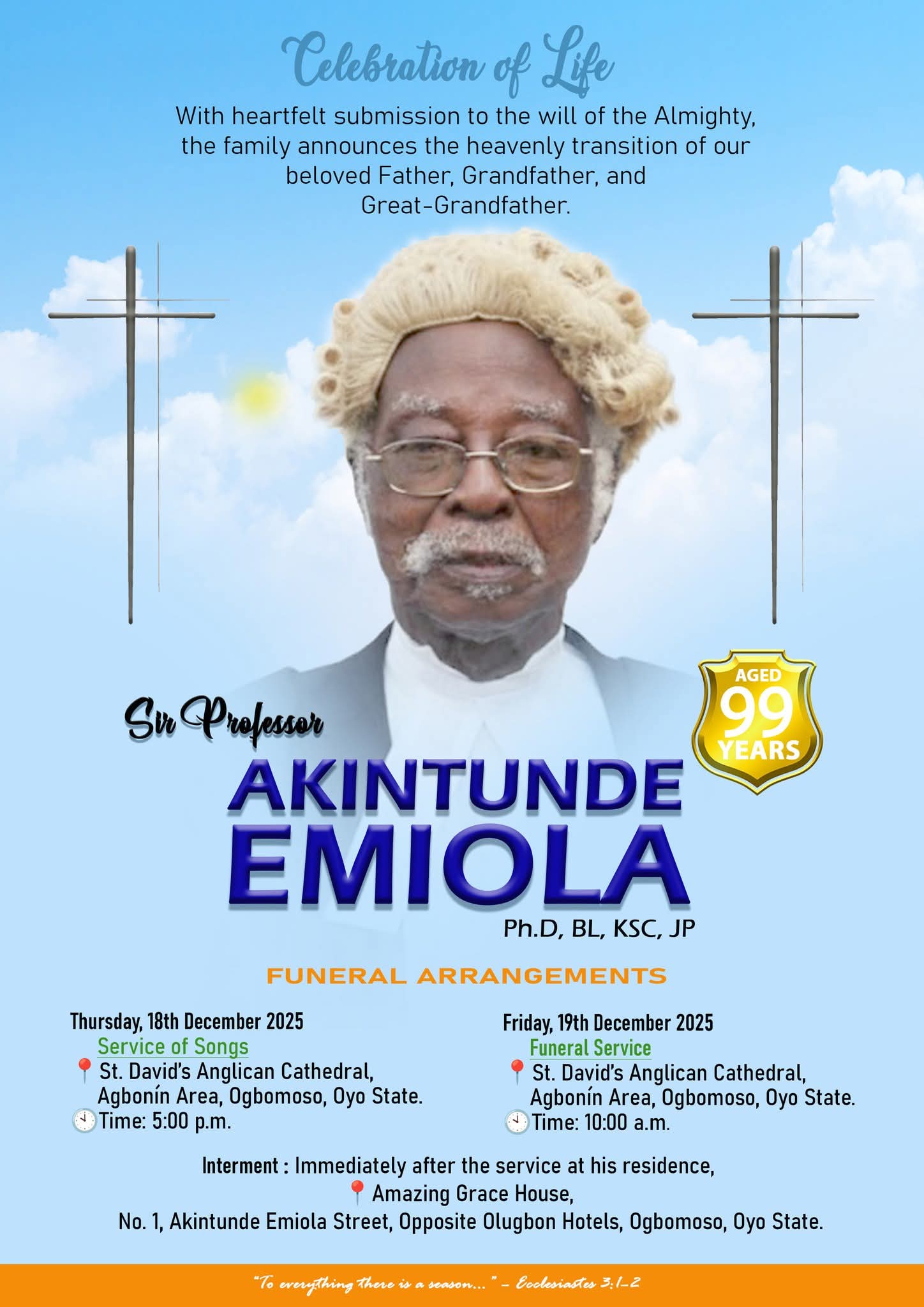 Emiola who died in late October 2025 at the age of 99 years was born in 1926.