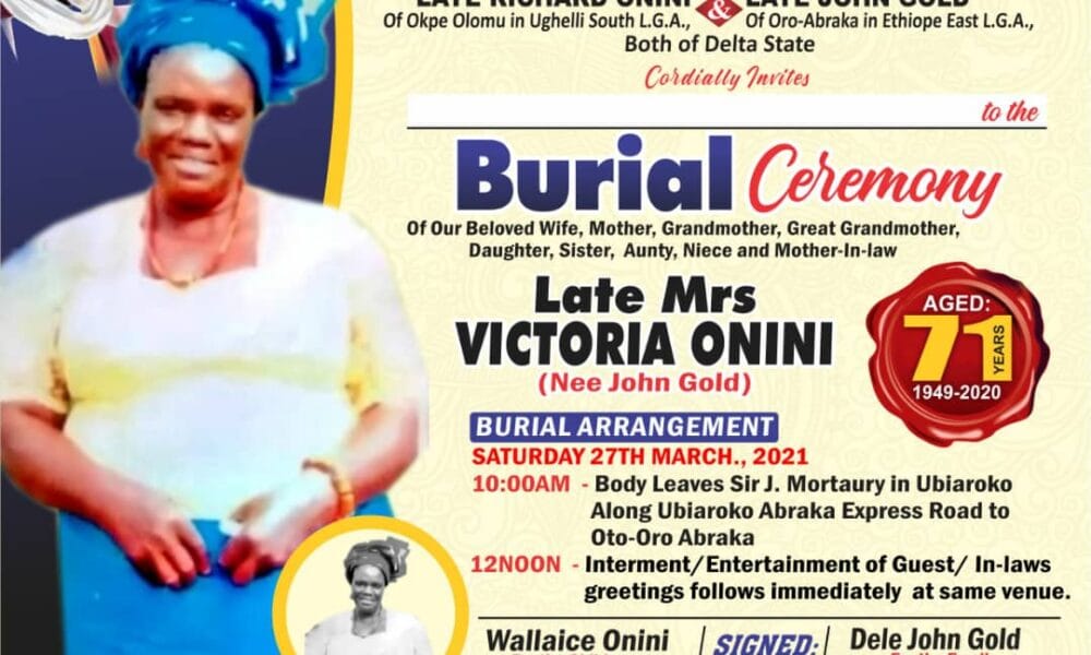 By Daniel Dafe, Abraka An Abuja based maritime security expert, Captain Jacob Ovweghre, will on Saturday, April 27, bury his mother-in-law, Mrs. Victoria Onini in Abraka,...