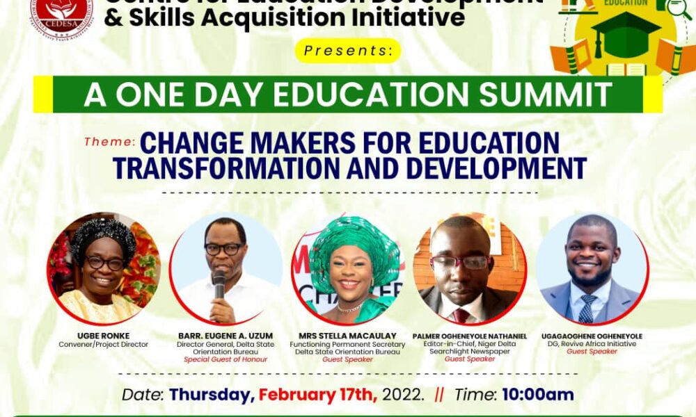 By Patrick Ochei The Centre for Education Development and Skills Acquisition (CEDESA) has hosted an education summit in Asaba, with Stakeholders insisting on the development and...