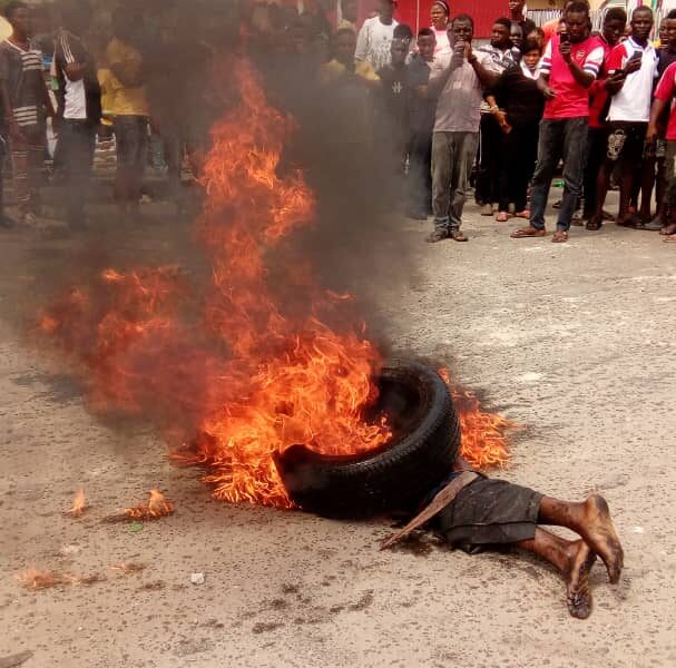 An angry mob set two suspected armed robbers ablaze in Warri, Delta, on Wednesday. A witness told Newsmen that a third suspect escaped, however. The source...