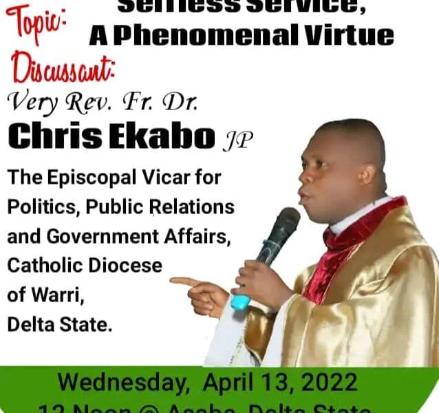 THE Episcopal Vicar for Politics, Public Relations and Government Affairs, Catholic Diocese of Warri, Delta State, Very Rev. Fr. Dr. Chris Ekabo JP, has emerged as...