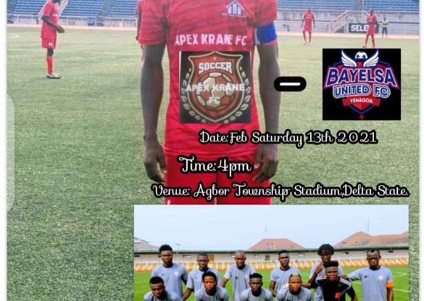 By Ogo Clarkson, Warri Apex Krane fc will play host to Bayelsa United in match day one of the Nigeria National League, NNL on Saturday 13th...
